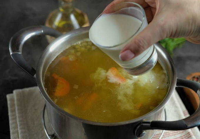 - Voeg knoflook toe aan de afgewerkte soep en dek af met een deksel. Het is beter om de soep ongeveer 15 minuten te laten trekken.