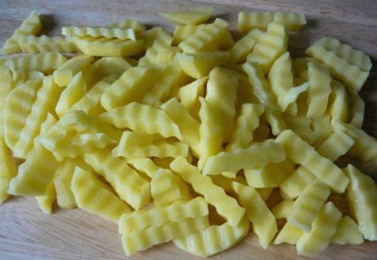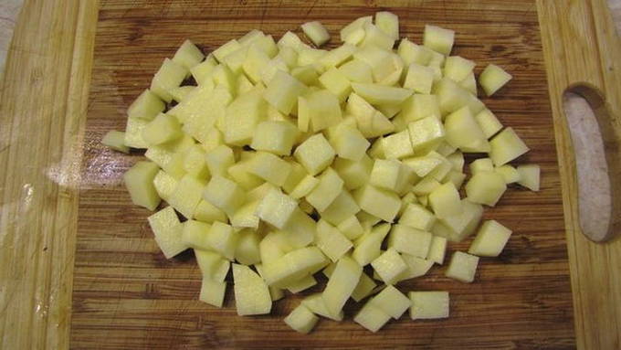- Snijd de aardappelen in willekeurige stukken.