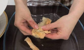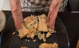 Laat de vis afkoelen en scheid de botten van het vlees.