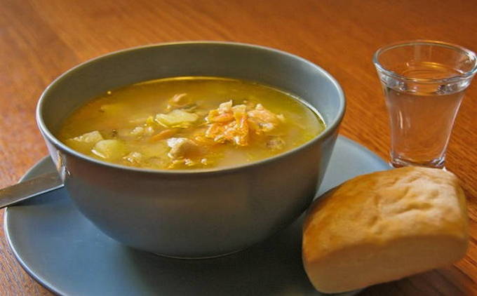 Hartige en smakelijke vissoep, die door het gebruik van de kop en de staart van de vis een redelijk betaalbare optie blijkt te zijn. In dit recept worden zowel aardappelen als gierst gebruikt om de bouillon in te dikken, wat de smaak van de soep aangenaam diversifieert.
