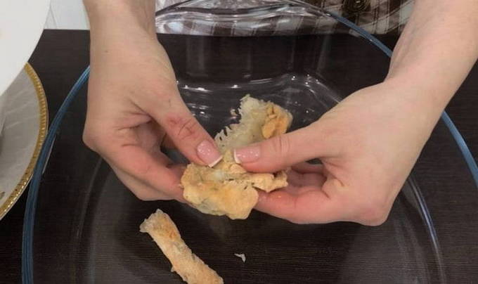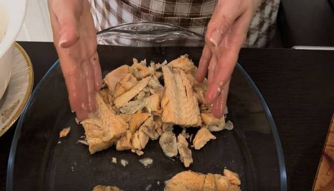 Laat de vis afkoelen en scheid de botten van het vlees.