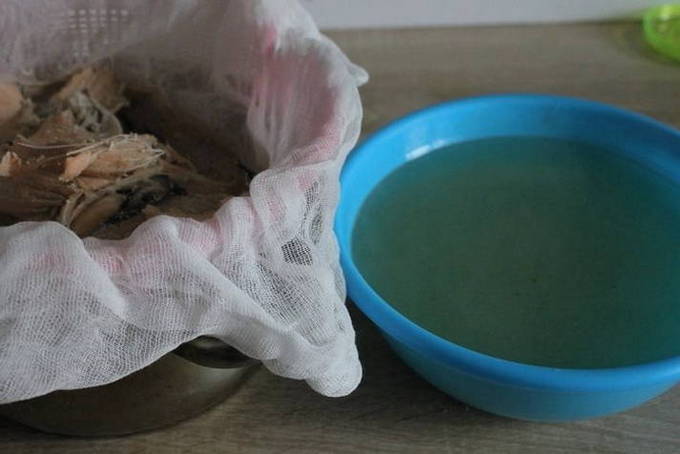 - Haal vervolgens de vis uit de bouillon en scheid de filets van de botten. Zeef de bouillon door kaasdoek.