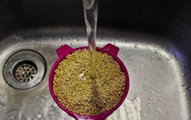 - Spoel gierst en gooi weg in een vergiet.