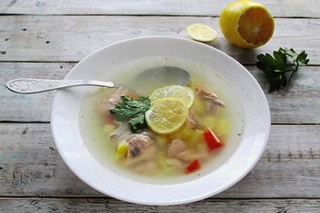 - Giet hete soep in kommen, voeg een paar schijfjes citroen en kruiden naar smaak toe.