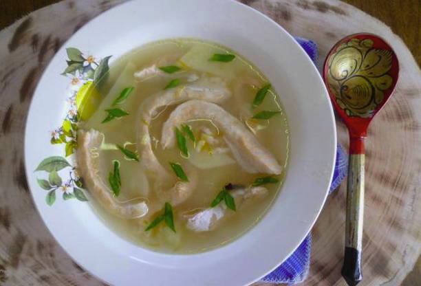 Vissoepbouillon wordt meestal gekookt op basis van de kop en de staart van een forel, het blijkt rijk en aromatisch te zijn. Dit voorgerecht kan op een doordeweekse dag thuis worden geserveerd of tijdens een picknick in het weekend worden gekookt.