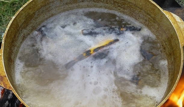 - Echte snoekbaars op een vuurtje in een ketel