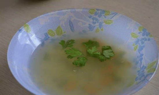- Snijd de tomaat, aardappel en wortel in stukjes en voeg deze ook toe aan de bouillon. Vul de gierst en kook de soep tot de aardappelen gaar zijn. Bestrooi de afgewerkte soep met droge dille, peper en zout. Eet smakelijk!