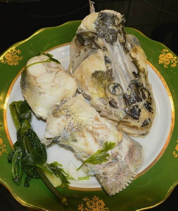 - Vul de stukken met water, voeg kruiden en zout toe. Als het water kookt, laat je de vis ongeveer een half uur sudderen.