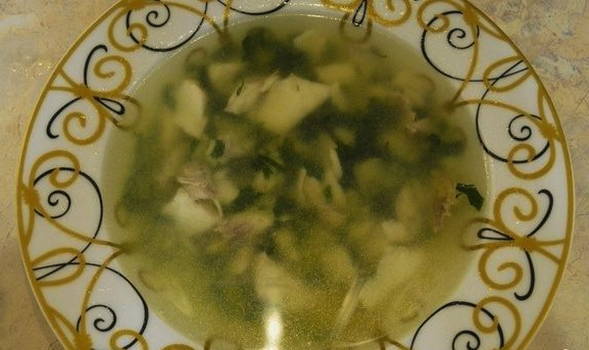 - We doen alle ingrediënten in kokend water en laten gierst, olie, wat dille en peterselie achter. Kook op matig vuur gedurende ongeveer een half uur, af en toe roeren en het schuim verwijderen.