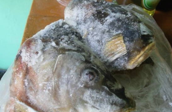 - We kiezen twee grote koppen rode vis voor het koken van vissoep.