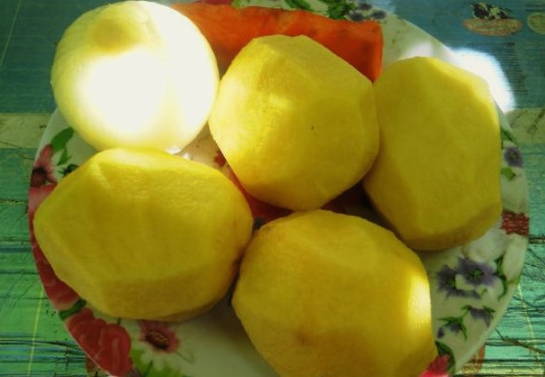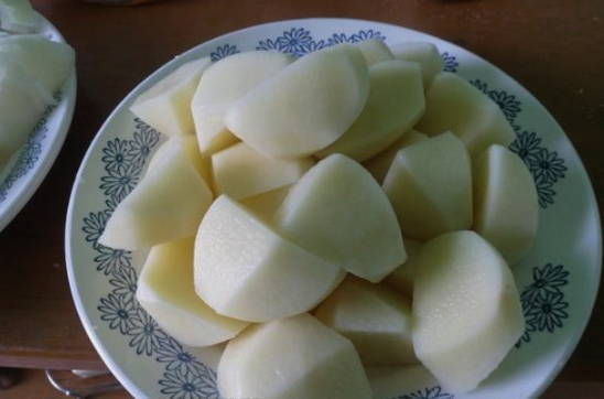 - We schillen de aardappelen en snijden ze in grote stukken.
