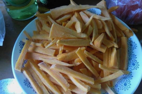 - Snijd de wortel in reepjes.