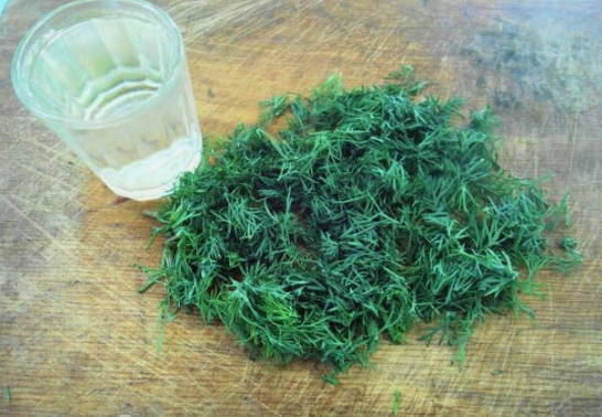 - Maal de dille. We laten het in de totale massa zakken en gieten hier wodka in.