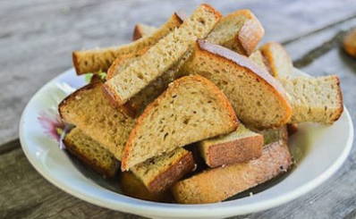 - Voor het serveren kunt u sneetjes roggebrood drogen en raspen met knoflook.