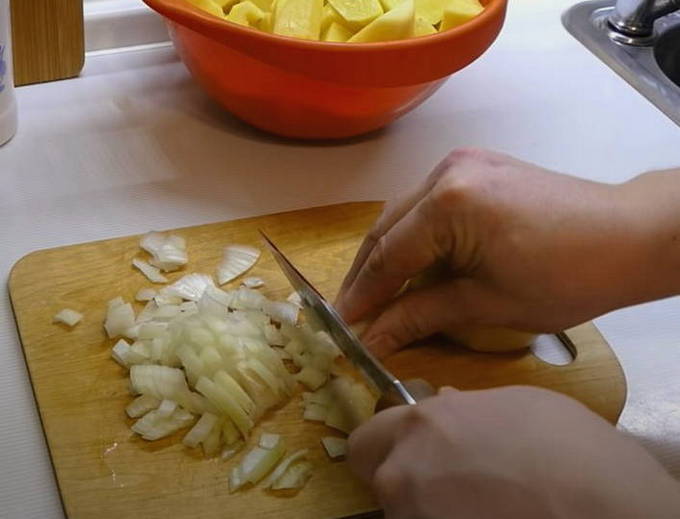 - Maar het is beter om de ui fijn te hakken.