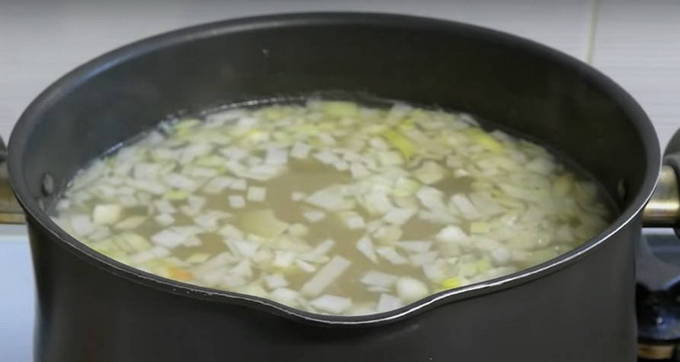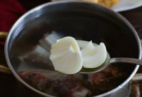 - Schil de ui, snijd in twee en leg bij de vis. Dus de ui zal zijn smaak en aroma geven, maar de stukjes ui zelf zullen niet meer in de afgewerkte soep zitten. Ideaal voor gezinnen waar sommige mensen dol zijn op uien, terwijl anderen ze altijd onder op het bord laten liggen.