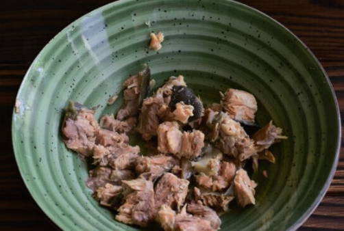- Op dit moment scheiden we het vlees van de visgraten en sturen het ook om in een pan te koken.