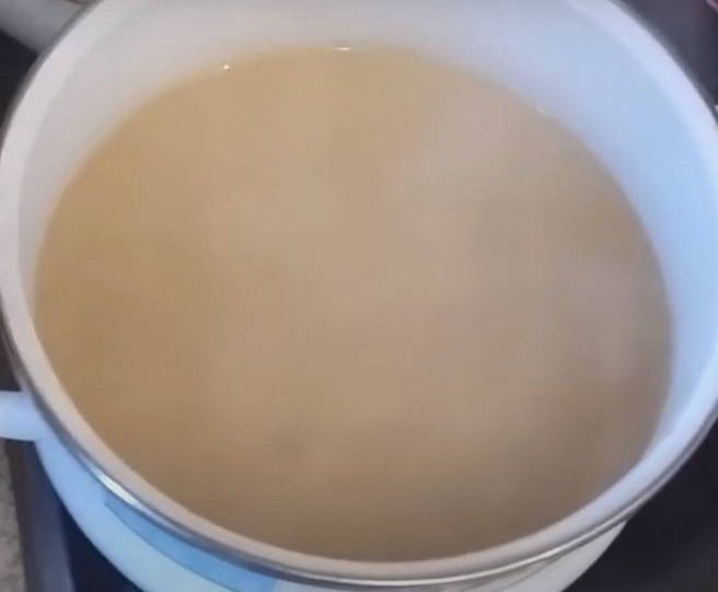 - Spoel de grutten meerdere keren af tot het water helder is. Doe in een pan en kook gedurende 10 minuten.