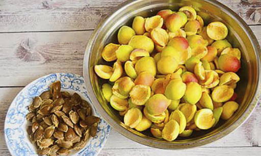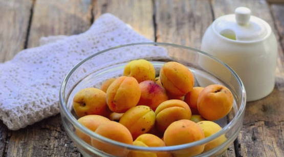 - Was de abrikozen goed, halveer ze, verwijder de zaadjes en doe ze in een pan of kom.