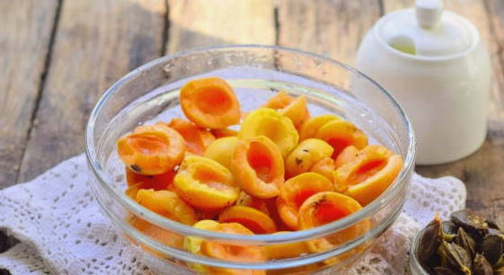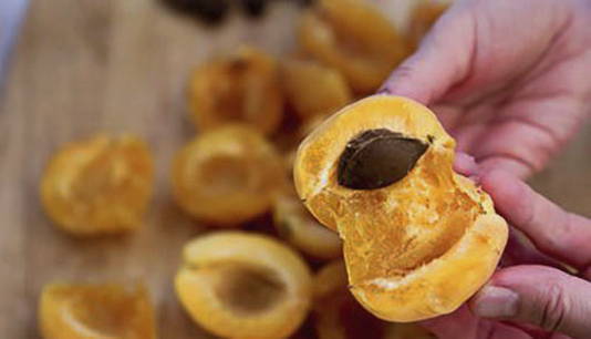 - Was de abrikozen, droog ze, snijd ze in plakjes en verwijder de zaadjes.