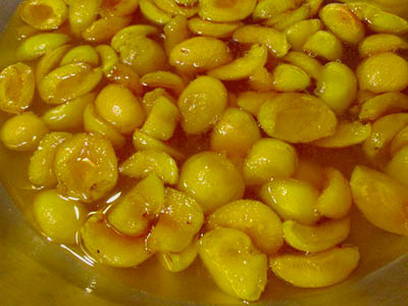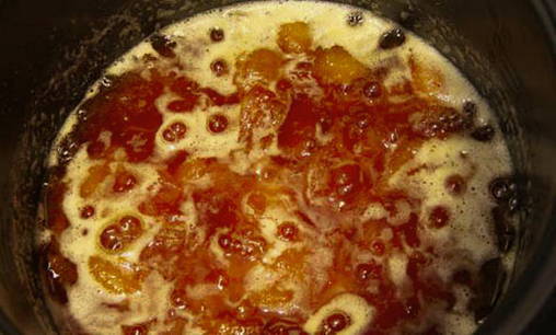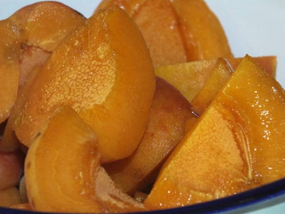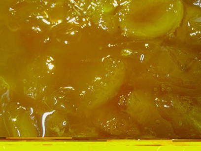 - De siroop blijkt erg dik te zijn en de abrikozenplakken worden transparant.