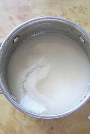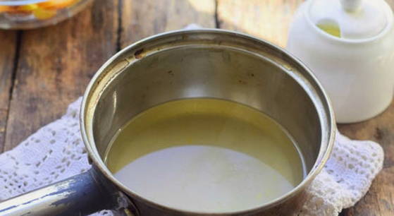 - Kook zoete siroop van water en suiker. Giet suiker in een pan, voeg water toe en breng het mengsel aan de kook.