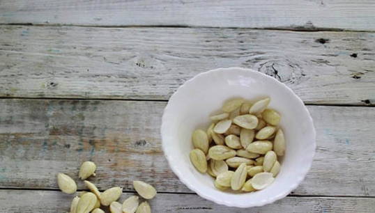 - Giet kokend water over de amandelen gedurende 10 minuten. Schil het dan af.