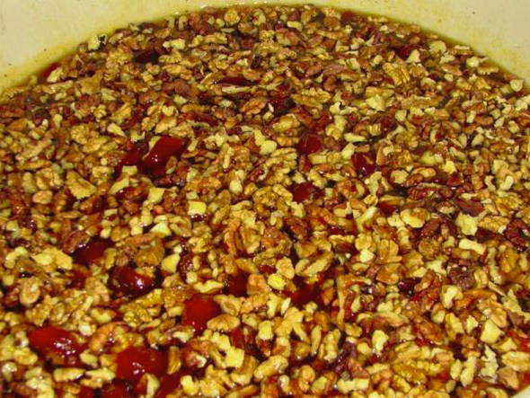 - Ga door met het koken van de jam samen met de noten gedurende 20 minuten.Giet daarna de hete jam onmiddellijk in gesteriliseerde potten en rol ze op. De jam blijkt erg lekker te zijn met een aangename crunch.