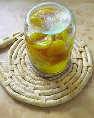 - Giet de siroop nog een laatste keer af in een pan en breng aan de kook. Schik de abrikozen in gesteriliseerde potten, vul ze met hete siroop en sluit ze goed af. koel de naad ondersteboven.
