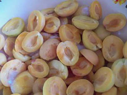 - Was de abrikozen, droog ze, snijd ze in plakjes en verwijder de zaadjes.