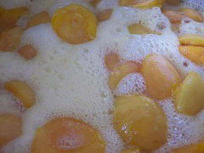 - Giet vervolgens de siroop in een pan, breng aan de kook en laat 10 minuten sudderen. Schenk de siroop opnieuw over de abrikozen en laat een half uur staan. Herhaal deze procedure nog twee keer.