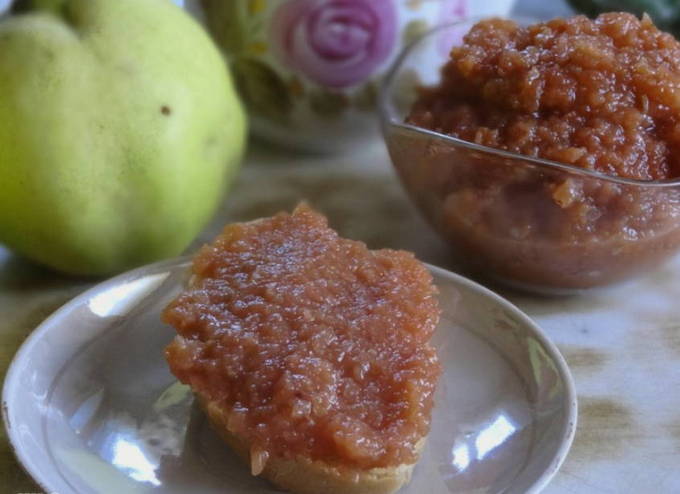 Voor liefhebbers van zachte en uniforme texturen is dit recept trouwens geschikt, waarbij we de kweepeer voor het koken in een vleesmolen malen. Zo'n dessert-delicatesse kan voor de jongste kinderen in het menu worden opgenomen om ze te laten wennen aan gezonde zoetigheden.