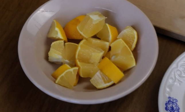 - Snijd de citroen apart in blokjes samen met de schil.