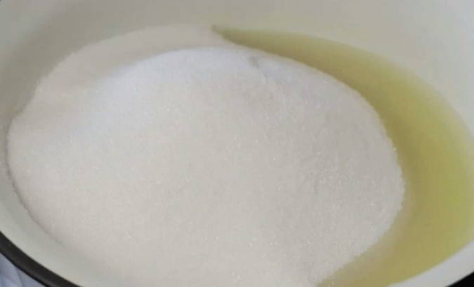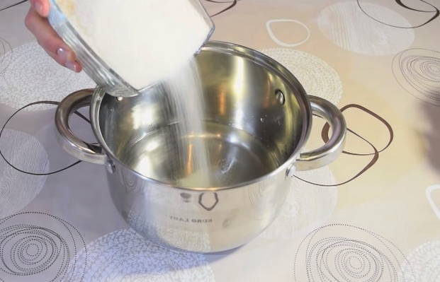 - Giet kristalsuiker in een pan met de benodigde hoeveelheid water en roer goed.