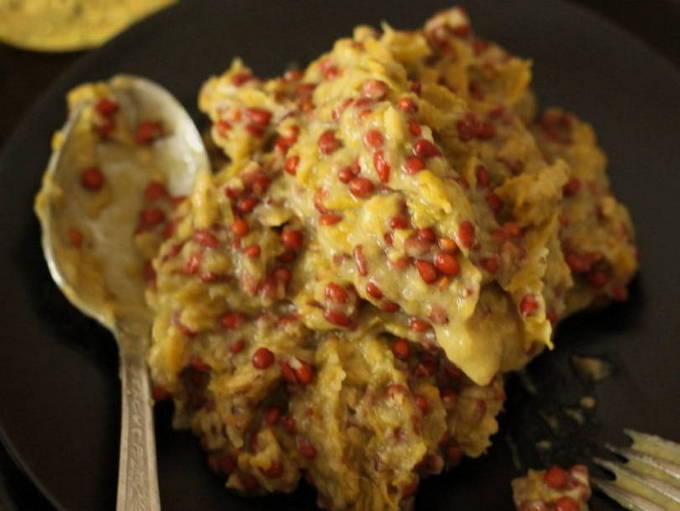 - Doe de rest van de kweepeer samen met de zaadjes op een bord.