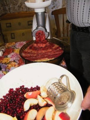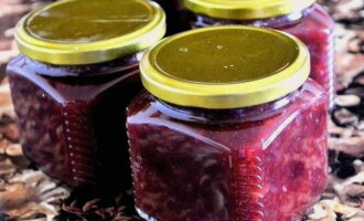 - Nadat de tijd is verstreken, onderbreken we de bessen met een staafmixer, maar niet tot ze glad zijn, en laten een klein stukje achter voor een aangename textuur van jam, geen jam.
