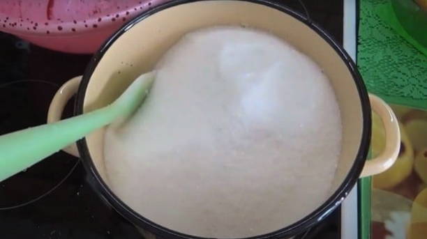 - Laten we een siroop nemen. Om het te bereiden, giet je 7 glazen zand en 1,5 glazen gezuiverd water in een pan - stuur het naar het vuur.