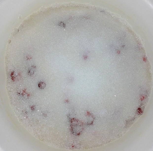 - Vul de bessen met kristalsuiker en laat 3-4 uur staan, of beter een nacht, zodat de ingrediënten hun natuurlijke sap geven.