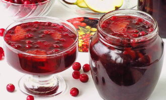 Met veenbessen, rode bosbessen, een paar appels, twee sinaasappels en kristalsuiker is het gemakkelijk om een vitaminedelicatesse voor de winter te bereiden en jezelf te beschermen tegen vitaminetekorten. Jam kan niet alleen als zelfstandig dessert worden gebruikt, maar kan ook worden geserveerd als toevoeging aan kaastaarten, opengewerkte pannenkoeken en bloempannenkoeken.