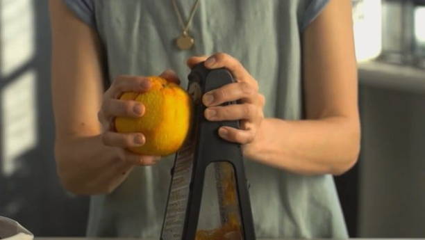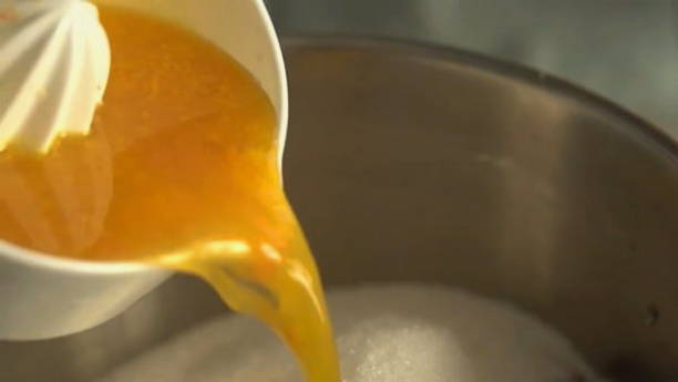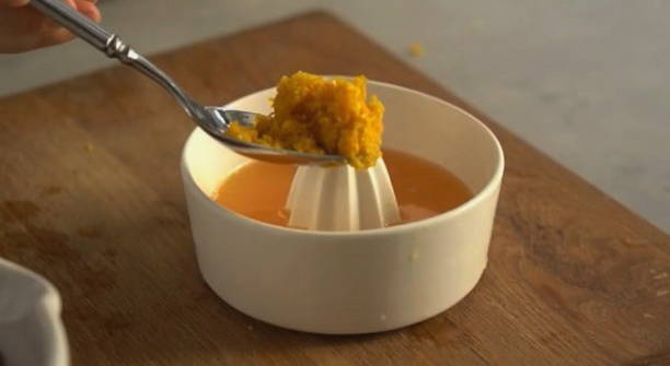 - Snijd de sinaasappelvrucht doormidden en pers al het sap eruit.