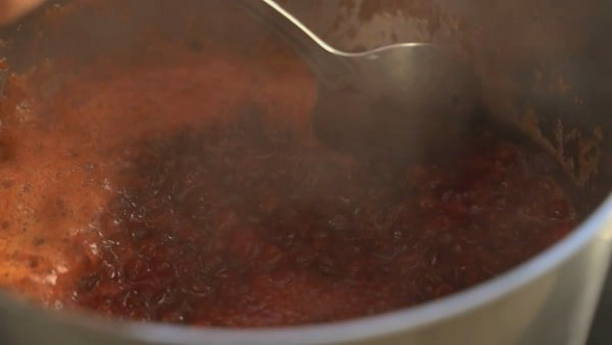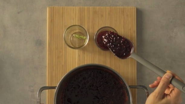 - Kneed na twee kookbeurten de bessen met een aardappelstamper of stoot lichtjes met een staafmixer.