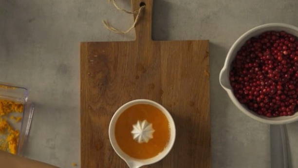 - Spoel de bessen en citrusvruchten grondig onder stromend water en droog ze af. Verwijder de schil van de sinaasappel en probeer het witte gedeelte niet aan te raken.