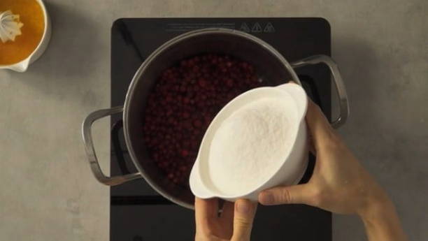 - We sturen de gewassen bosbessen in een pan, bedekken ze met kristalsuiker en zetten ze op het fornuis.
