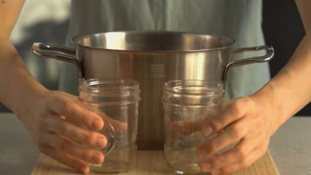 - Giet de inhoud van de pan voorzichtig in steriele en droge potten.