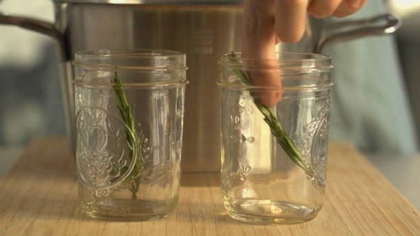 - Leg op de bodem van elke pot een takje geurige rozemarijn.