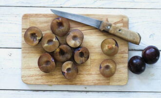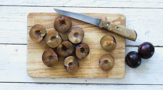 - Verwijder de zaden van de pruimen.