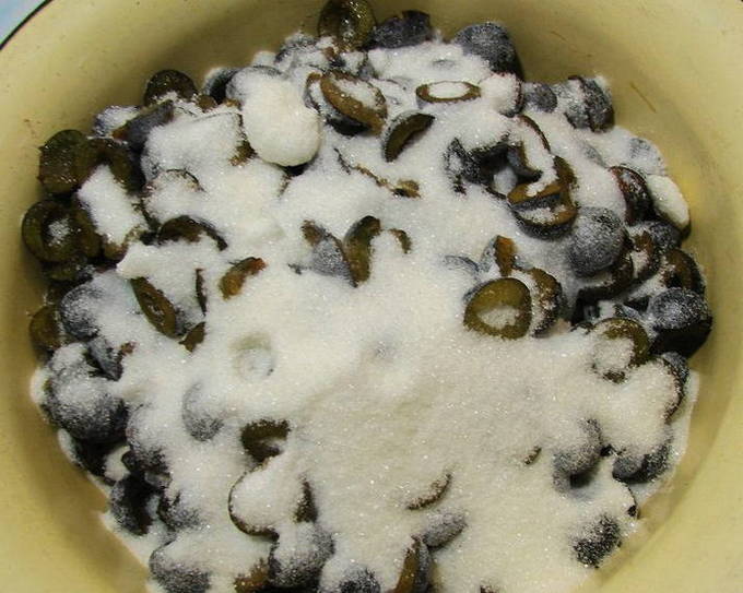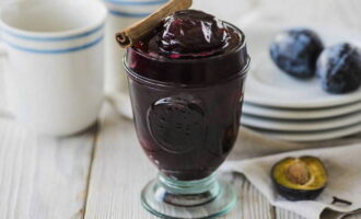 Ontpitte bessen behouden hun vorm beter. Bovendien zien dichte pruimen in robijnrode siroop er erg mooi uit in een kristallen schaal en fascineren ze met hun decoratieve effect. Zo'n jam zou voor de verandering in elke voorraadkast moeten staan.