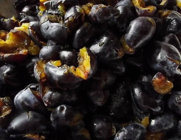 - Sorteer de pruimen, spoel ze af en verwijder de zaden.