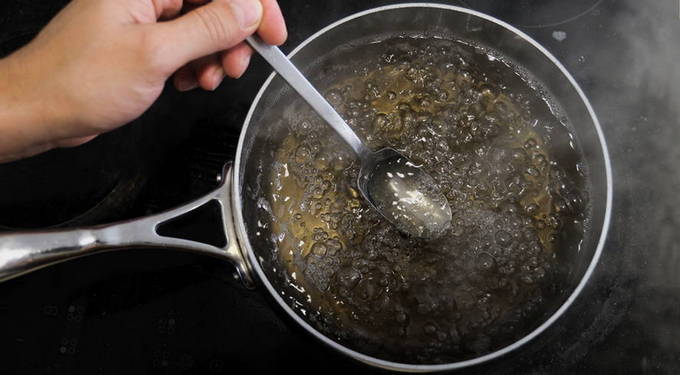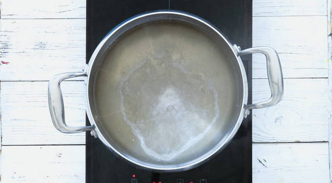 - Giet water in een pan, breng het op 85 graden.