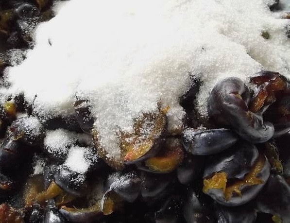 - Roer de pruimen door de suiker en laat een nacht op een koele plaats staan.